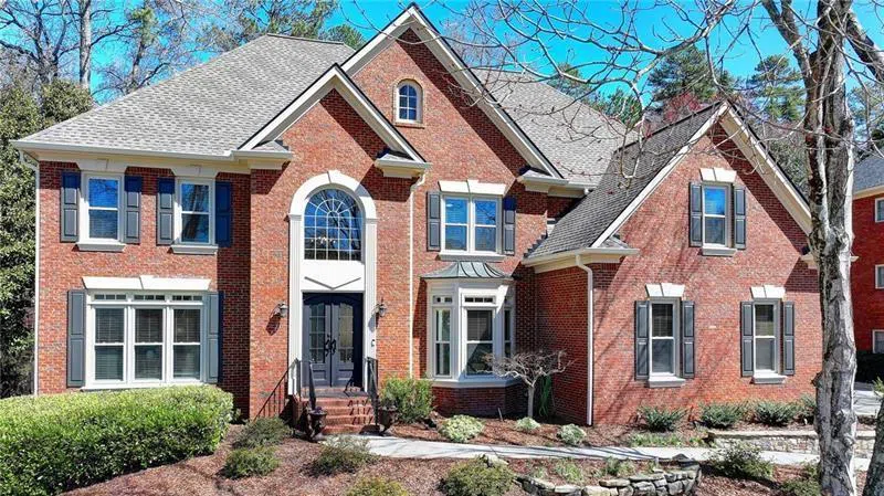 Be prepared to fall in love with this stunning brick home in sought after Oxford Mill. The custom iron doors welcome you into the soaring two story foyer which is open to a sizeable dining room and office. You will absolutely love that this home features all hardwood floors and no carpet!! Step into the super large vaulted story family room. Plenty of room for family movie night or entertaining family and friends. The kitchen boasts granite counters, white cabinets, double ovens and six burner range. The venthood actually vents to the outside. You will love the large walk in pantry. A full bedroom and updated bathroom with quartz counters finishes the main level. Before you head upstairs you must explore the phenomenal walk-out yard. No steps down to the grass but instead a lovely flagstone patio, outrageously beautiful landscaping and firepit area. The primary bedroom on the second floor might be your favorite room in the house with sitting room and fireplace. Don't miss the walk up stairs to the attic behind the door by fireplace in primary suite. The impressive primary bath was just completely renovated into a luxurious spa like bath with large shower, beautiful vanities, new lighting and paint. It's a masterpiece! The basement features a bedroom, full bath and gym. Get ready to move right into this stunning home... 3 year old roof, new water heater, electric car charger in garage, 6 inch gutters, full yard irrigation system, new designer lighting, freshly painted designer neutral paint and perennials that will bloom every year. The seller made this home low maintenance so you can live your best life! Oxford Mill is one of the most popular communities to Johns Creek. Walk to the elementary school. Enjoy swim team, tennis and pickleball. It's neighborly and welcoming and close to everything!